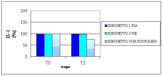 Il grafico mostra i valori medi (espressi in percentuale) della concentrazione della IL-1ß nel fluido creviculare.