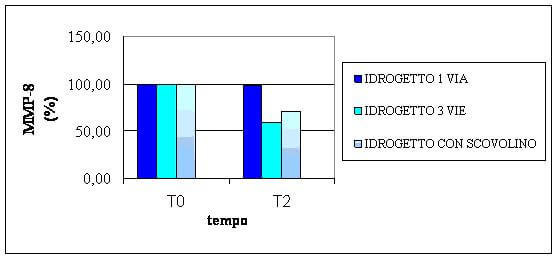 Il grafico mostra i valori medi (espressi in percentuale) della concentrazione della MMP-8 nel fluido creviculare.