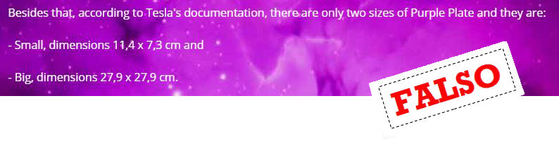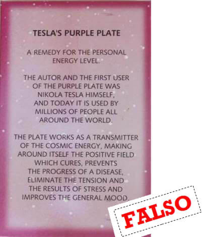 Come si può vedere sulla parte esterna della confezione di questo produttore viene anche riportato, nel 1994, la frase il creatore e il primo utilizzatore delle Piastre Viola di Tesla è stato lo stesso Nikola Tesla, cosa impossibile visto che Nikola Tesla morì il 7 gennaio 1943 in una stanza di albergo negli USA: