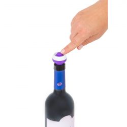 Per aprire la bottiglia dopo averne conservato il contenuto sottovuoto premere la valvola che si trova al centro del tappo. Quando l'aria è fuoriuscita, estrarre il tappo dalla bottiglia.